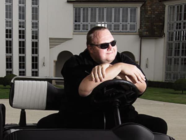 Kim Dotcom, aka Kim Tim Jim Vestor, aka Kim Schmitz, doesn’t act much like a man with a net worth in the negative. At 11 am on a Tuesday he’s driving me around on a golf cart “safari” of his 60-acre estate outside of Auckland, New Zealand. We swing past his 2,000-bottle-a-year vineyard and barrel down a hill toward his $30 million mansion, complete with a hedge maze, a five-flatscreen Xbox room and a 75-foot cascading water display.