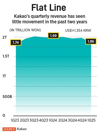 It’s a critical turning point for Kakao. The company’s business is dependent on the Korean market—compared with blue-chip stalwarts like Samsung and Hyundai whose fortunes are determined by global exports—which faces a deepening economic slump. The country’s GDP contracted by 0.2 percent in the first quarter amid the threat of a global trade war, weak consumer spending and months of political turmoil.