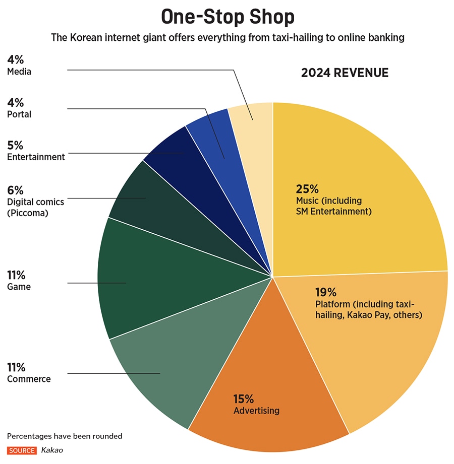 During the takeover battle for SM, Chung was running venture capital arm Kakao Ventures and also had a board seat at Kakao. She had made a name for herself as a VC investor with a portfolio that produced four unicorns. To steady the ship, Kakao’s board enlisted Chung as CEO last year. “I saw that period as a turning point for Kakao," she recalls, adding that a crisis “can be an opportunity for renewal."
