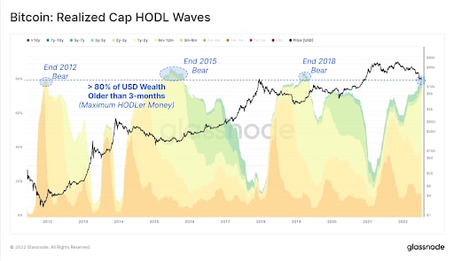 According to Glassnode, a leading blockchain data and intelligence platform, the bulk of Bitcoin (BTC) has not been HODLed for at least three months, similar to previous Bitcoin market bottoms.