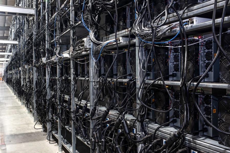 Bitcoin mining machines at the Whinstone US Bitcoin mining facility in Rockdale, Texas, on October 10, 2021. Experts say rule of law and cheap electricity in the US are a draw for bitcoin miners, whose energy-gulping computers race to unlock units of the currency.