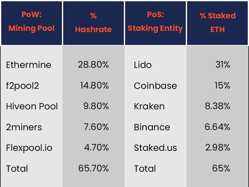Before and after Merge ETH concentration metrics with Mining/Liquid Staking aggregators