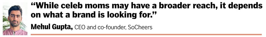 So, do mom influencers with a smaller following stand a chance when pitted against celebrity mom influencers? Gupta of SoCheers believes that content is king, and smaller momfluencers have a chance to stand out with their unique strengths. “Smaller influencers often dive deep into specific topics, making their content super niche, thus appealing to a dedicated group of followers." They’re seen as more real and relatable, and they’re great at building a tight-knit community through conversations. Plus, they’re usually more budget-friendly for brands, which is a win-win. “While celeb moms may have a broader reach, it depends on what a brand is looking for. Having said that, metrics and numbers play a vital role for brands to get the desired reach and engagement. And many brands like to mix it up, using both to get the best of both worlds," Gupta adds.