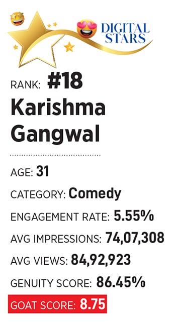 Gangwal, 31, popularly known as RJ Karishma, has since made her subscriber base of over 15 million people laugh through her satirical, slice-of-life content based on Indian families. She’s the saas (mother-in-law) who’s always criticising her bahu (daughter-in-law), and she’s also the bahu who knows how to handle situations tactfully. She’s the condescending bua (aunt), and she’s also the grandmother who is constantly dishing out unsolicited advice.