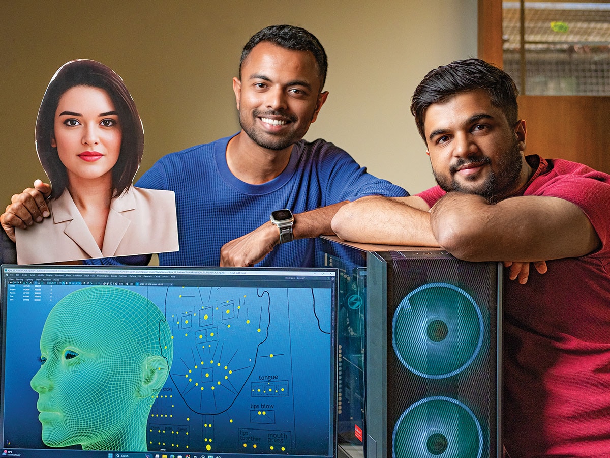 George Tharian (left) and Himanshu Goel (right), the co-founders at FUTR Studios, created virtual influencer character Kyra in 2022Image: Nishant Ratnakar for Forbes India