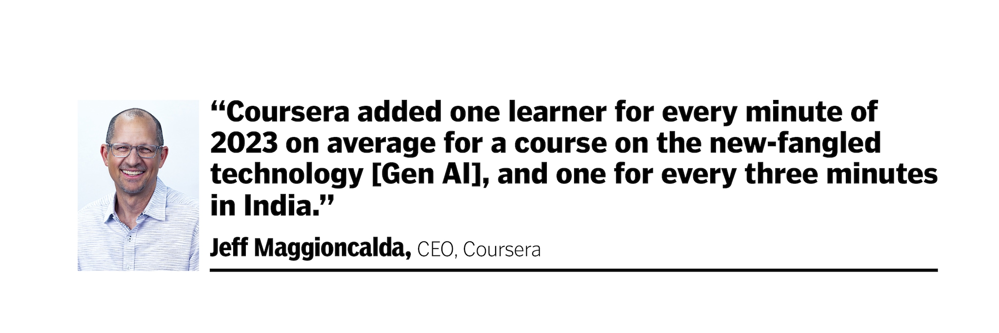 Edtech is, perhaps, one of those sectors that’s going to see a disproportionate disruptive impact from Gen AI. In fact, US edtech giant Coursera’s CEO Jeff Maggioncalda says the advent of ChatGPT meant that he lost sleep for a good 45 days, tearing apart the nuts and bolts of the large language model. People wanted to learn about Generative AI, and fast, and industry would have to keep up.