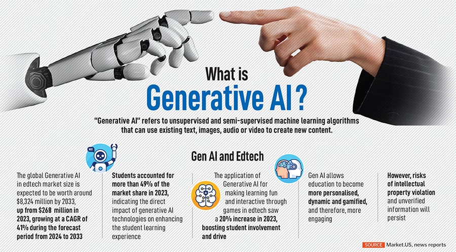 The ‘revision bot’ is an application of artificial intelligence (AI), and more specifically, generative AI (Gen AI) that the edtech (education technology) sector is excited about. Now, when you’re unsure of a concept while going through study revisions, you can simply ‘ask’ the revision bot, who will trawl through content videos, text and so on and offer you a neat, conversational summary or explanation. Still have doubts? Ask again. And again. At any time of day.