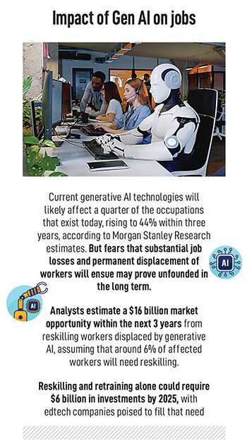 “We have not seen the full impact of Gen AI yet, but we expect that for jobs such as call centre operations, translators, copywriters—certain jobs are going to be heavily impacted, and those people are going to have to be trained for new jobs," he says.