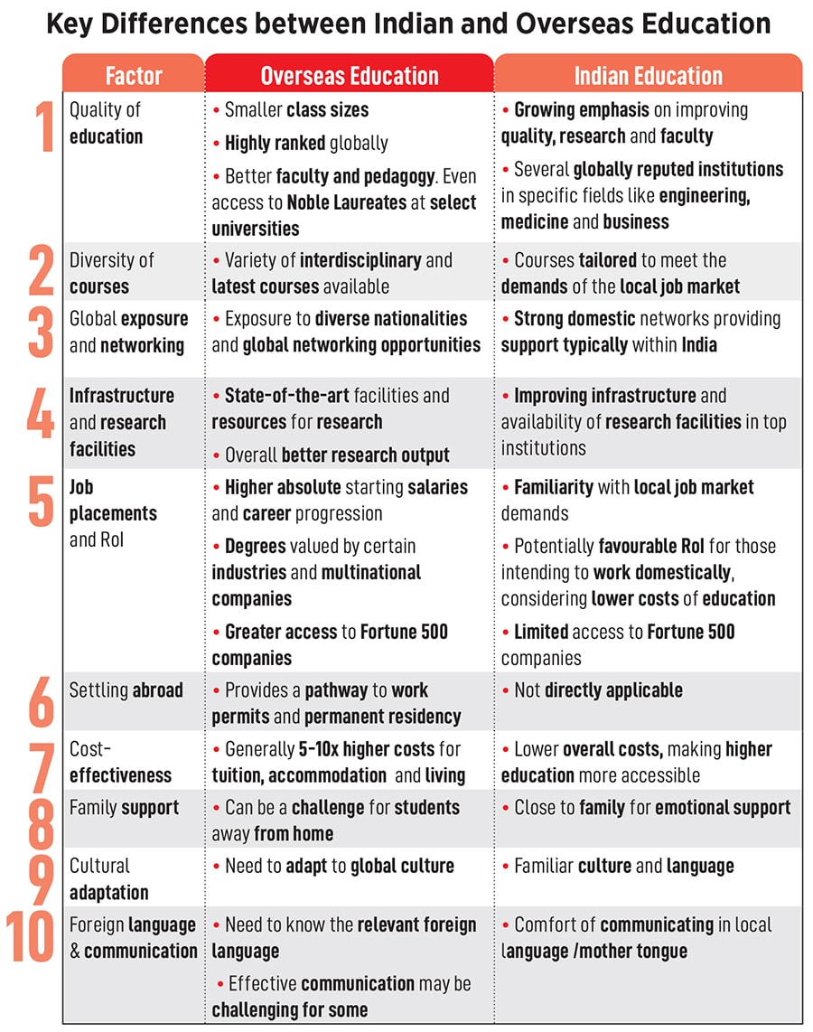 Given the current landscape of geopolitics, visa restrictions, feasibility and safety of studying abroad, the decision of whether to study in India or abroad should be taken at least two to three years in advance. Both the choices involve a different strategy and planning to get into top universities and courses..