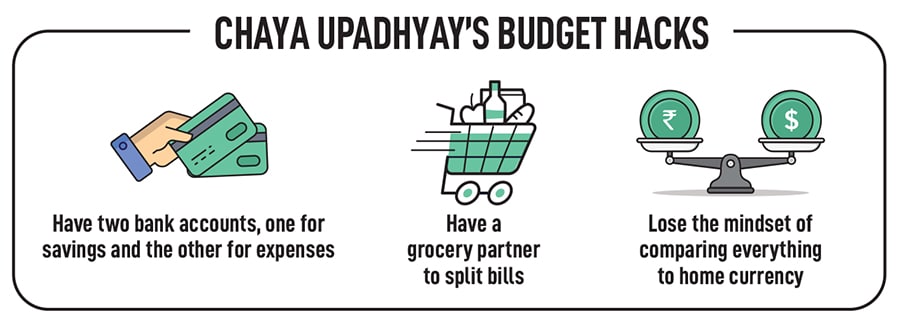 A hack that Upadhyay uses to keep track of her expenses is creating two bank accounts. In one, she keeps her savings, which will become her due rent, and in the other, she keeps money for her daily expenses. Besides this, Upadhyay suggests having a grocery partner. “It helps as the bill gets split... groceries are really expensive here."