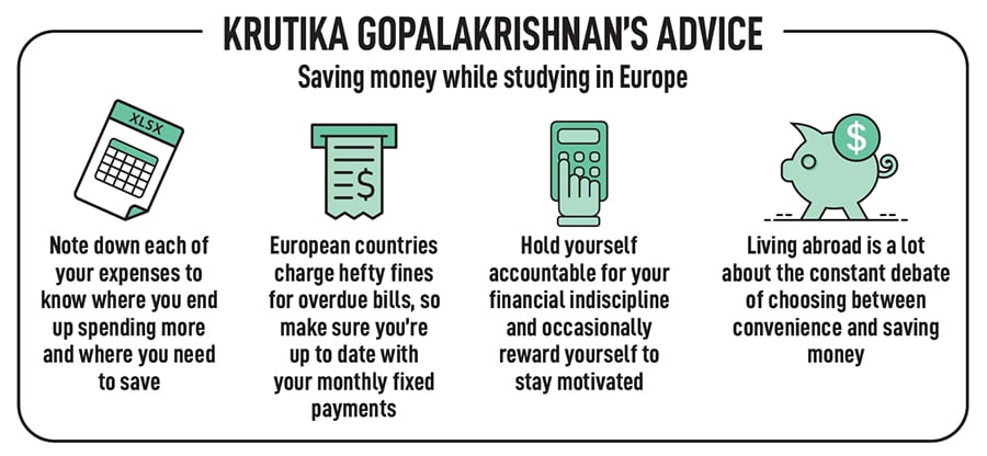 Just like the UK, European countries are also known for their relatively higher costs of living. Krutika Gopalakrishnan, 23, is currently pursuing a master’s in management from ESCP Business School, Paris.