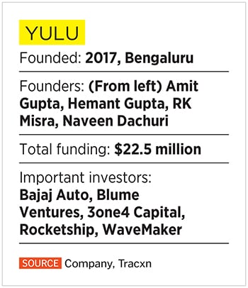 In fact, about four years ago, Yulu’s founders, Amit Gupta, RK Misra, Naveen Dachuri and Hemant Gupta, started out by putting bicycles in different parts of Bengaluru, which they called Yulu zones. Gupta, the CEO, previously co-founded ad-tech company InMobi. Misra was his senior at IIT-Kanpur, Dachuri was his batchmate and Hemant Gupta, a childhood friend.