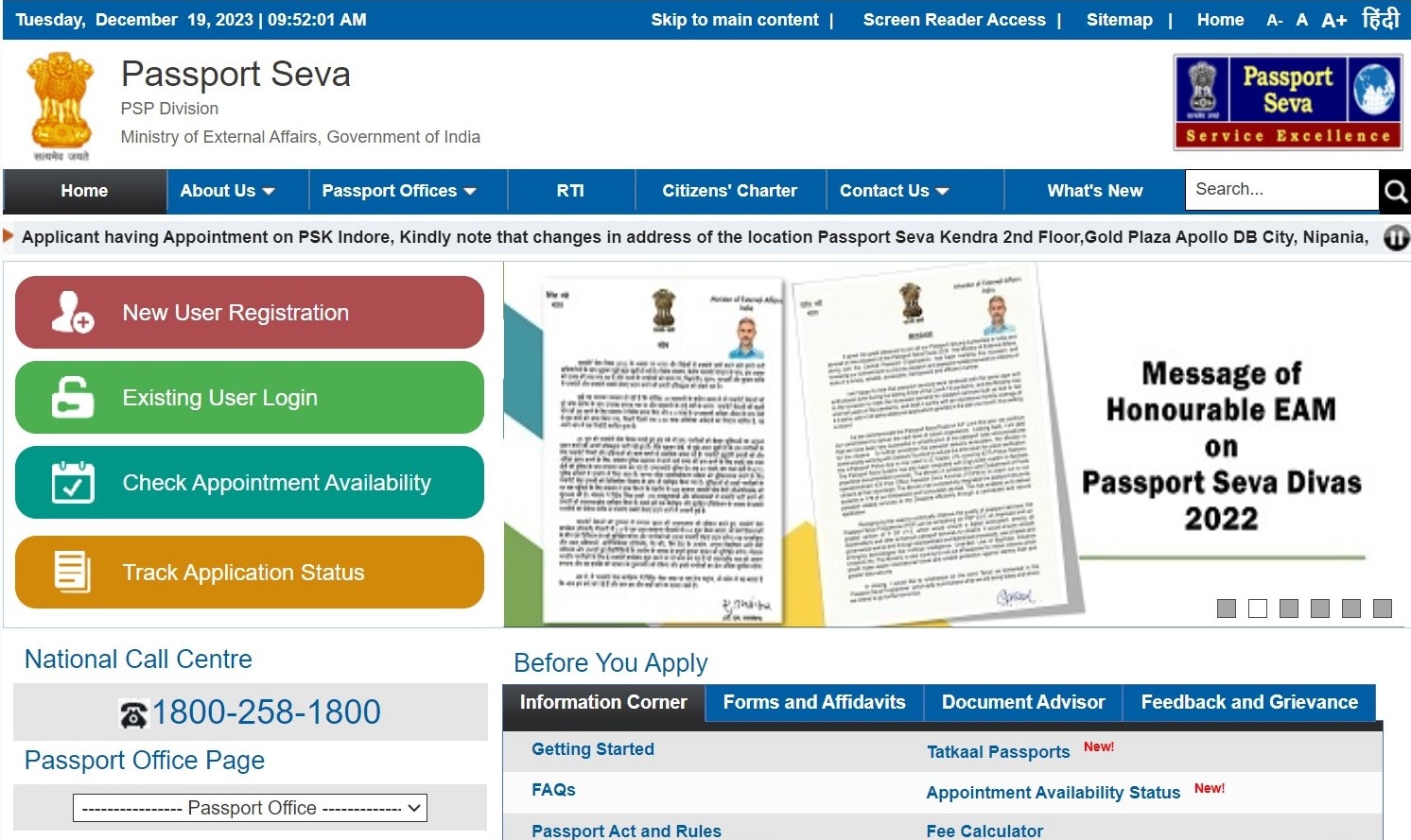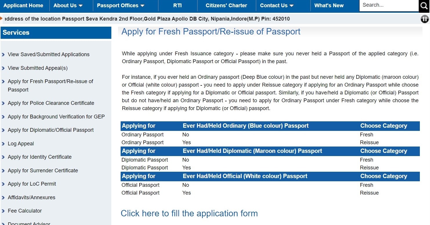 Click the ‘Apply for Fresh Passport/Re-issue of Passport’ link.