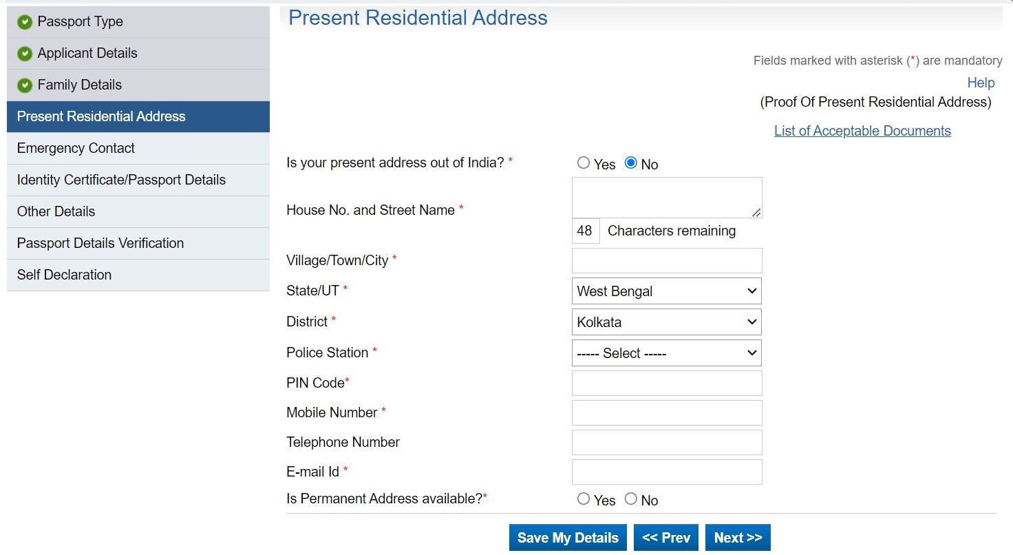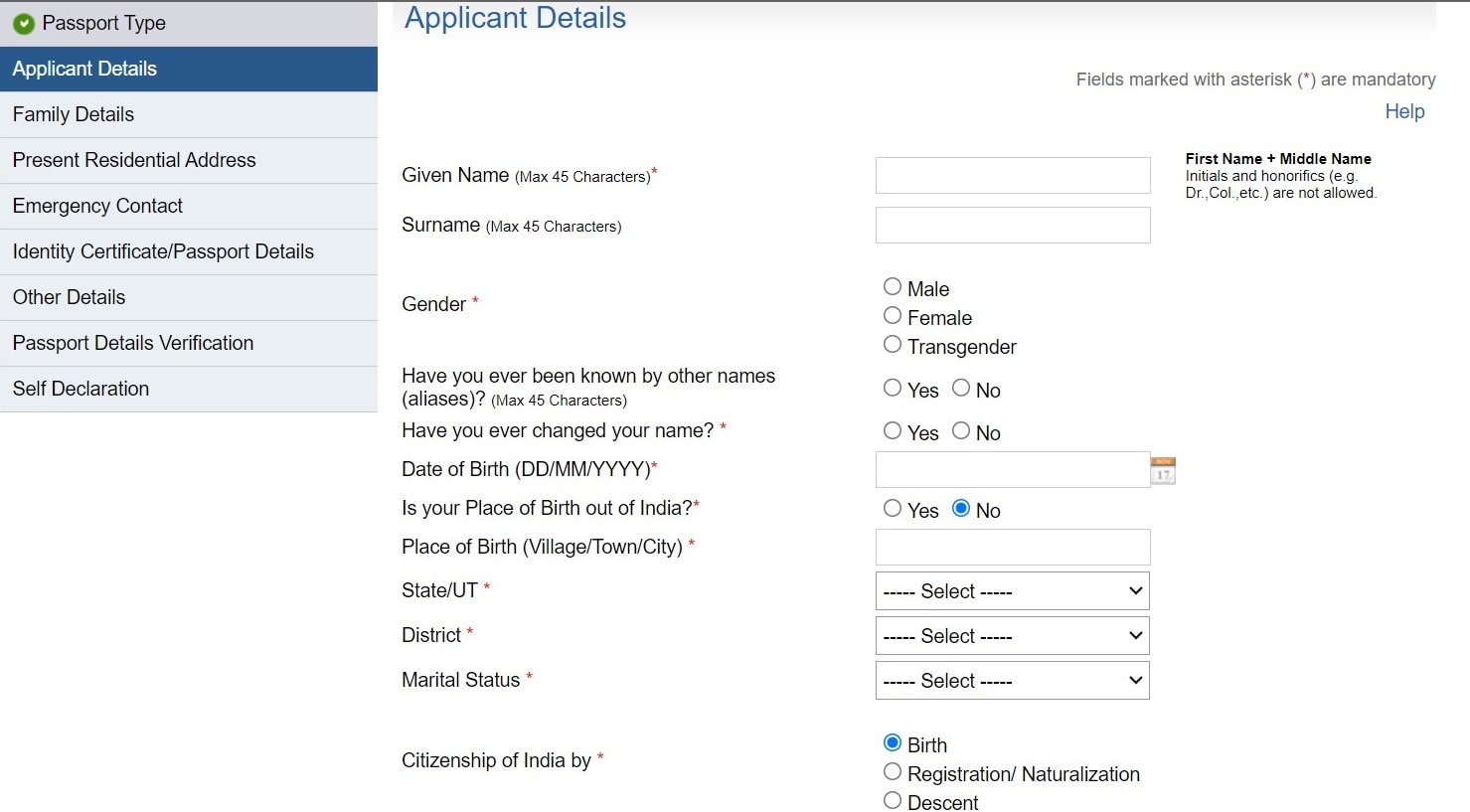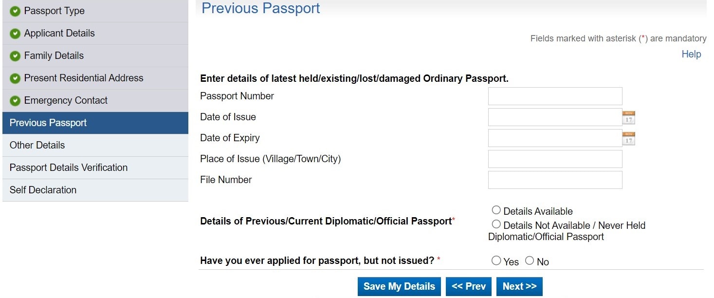 Choose the ‘re-issue of passport’ option and the reason for re-issue accordingly. Also, choose the application type (normal/tatkaal) and booklet type (36 pages/60 pages).