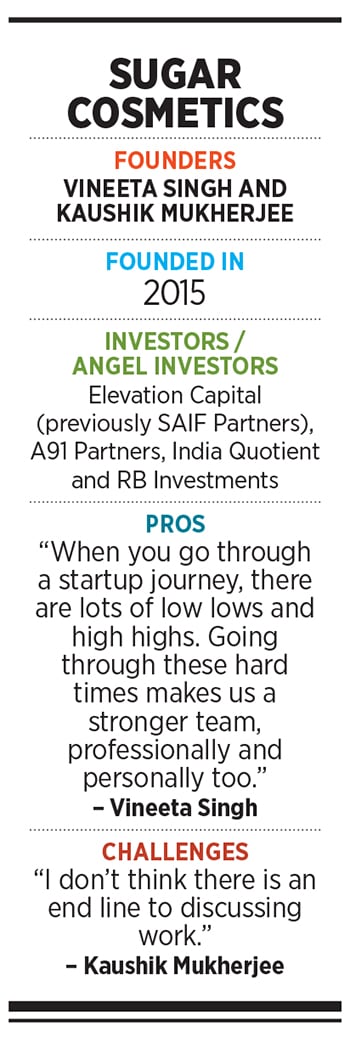 Another couple—Vineeta Singh and Kaushik Mukherjee—has also disrupted the makeup market in India, with Sugar Cosmetics. However, unlike Juicy Chemistry that was born out of an experiment, Singh and Mukherjee, both IIM-Ahmedabad graduates, had pervious entrepreneurial experience.