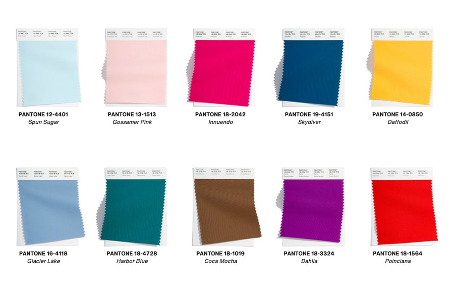 The Spring/Summer 2022 color palette unveiled by the Pantone Color Institute at New York Fashion Week