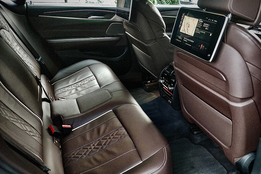 There are two screens housed on the backs of the front seats. 12.3 inches each! There’s no dearth of tech in here: A 16-speaker Harmon Kardon sound system, a panoramic sunroof, four-zone climate control, gesture control, wireless charging for your phones… it goes on. And on. The rear seats also have a recline function (by 9 degrees, no less). I tried and failed miserably to identify any faults. Well, I suppose BMW could have chucked in a mini-fridge and a pair of wine glasses for the rear seat occupants, but I’ll forgive them this folly.