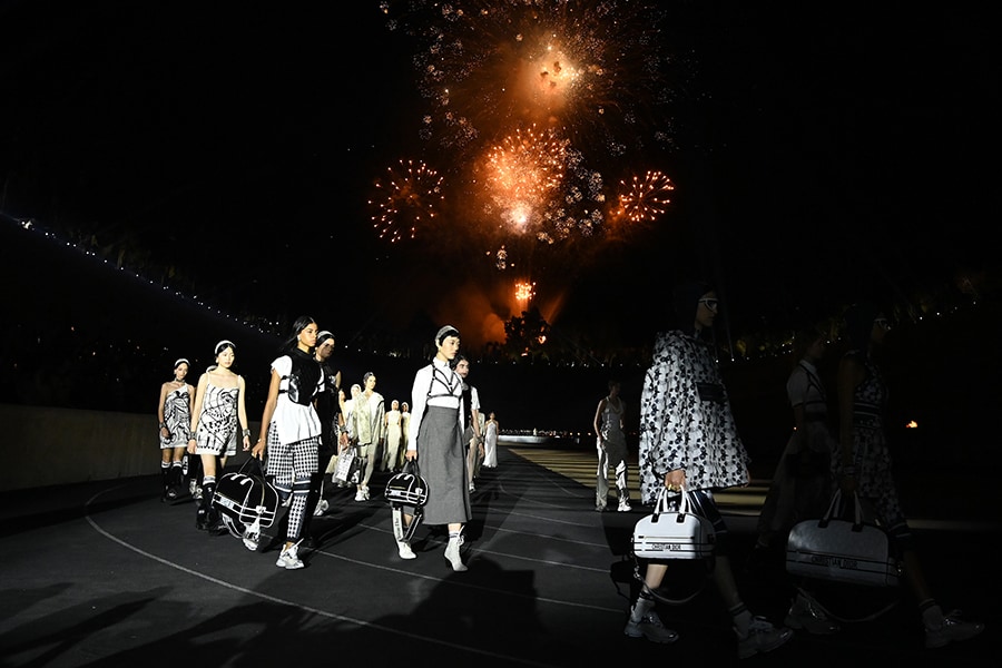 French fashion house Dior on Thursday returned to live audience shows with a firework-punctuated presentation of its 2022 Cruise collection in Athens.