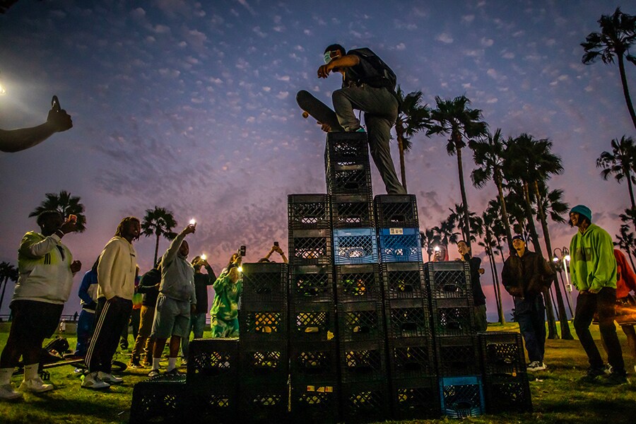 Most videos end with what looks like a painful fall onto the collapsing crates, or the ground, as onlookers film on their phones in what some dubbed an event in the "Hood Olympics."