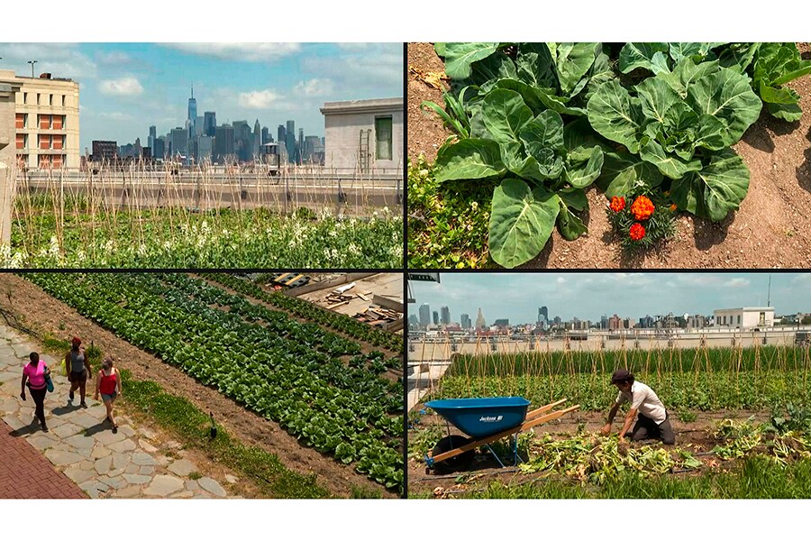 With buildings all around, the Statue of Liberty in the distance and heavy traffic below, the Brooklyn Grange rooftop farm grows more than 45 tonnes of organic produce a year.