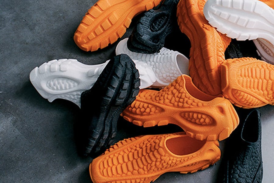 The very first fully 3D-printed shoes available to the public, by Heron Preston and Zellerfeld.