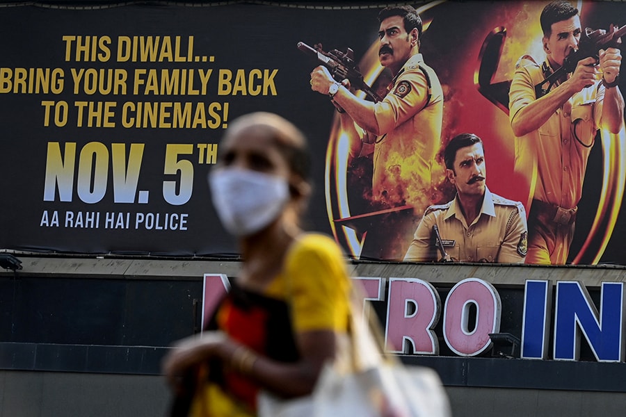 Hindi film "Sooryavanshi"—starring top names Akshay Kumar and Ranveer Singh—is the first marquee Bollywood film to be released on the big screen in 18 months.