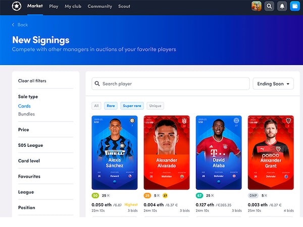 Using the cryptocurrency Ethereum, players can buy and sell digital images of footballers in NFT form, with their value fluctuating according to their performances on the pitch.