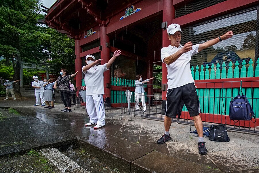 "Our daily lives have become more difficult during the coronavirus. But we need to move our bodies more than ever," Mitsutoshi Watanabe, who leads a group of around 250 people every morning in Tokyo"s Ueno Park, told AFP at a recent socially distanced practice.