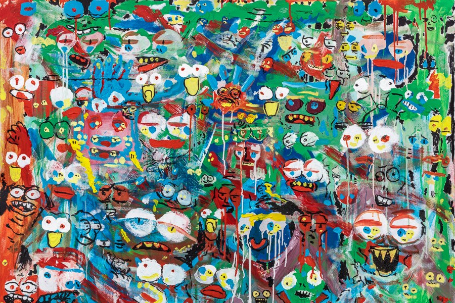 After revolutionizing the world of adult animation with "Rick and Morty," Justin Roiland is taking on the art world. July 21, the American artist will see "mypeoplefriend" go up for auction. This acrylic painting on canvas represents a horde of grotesque characters with bulging eyes and sharp fangs.