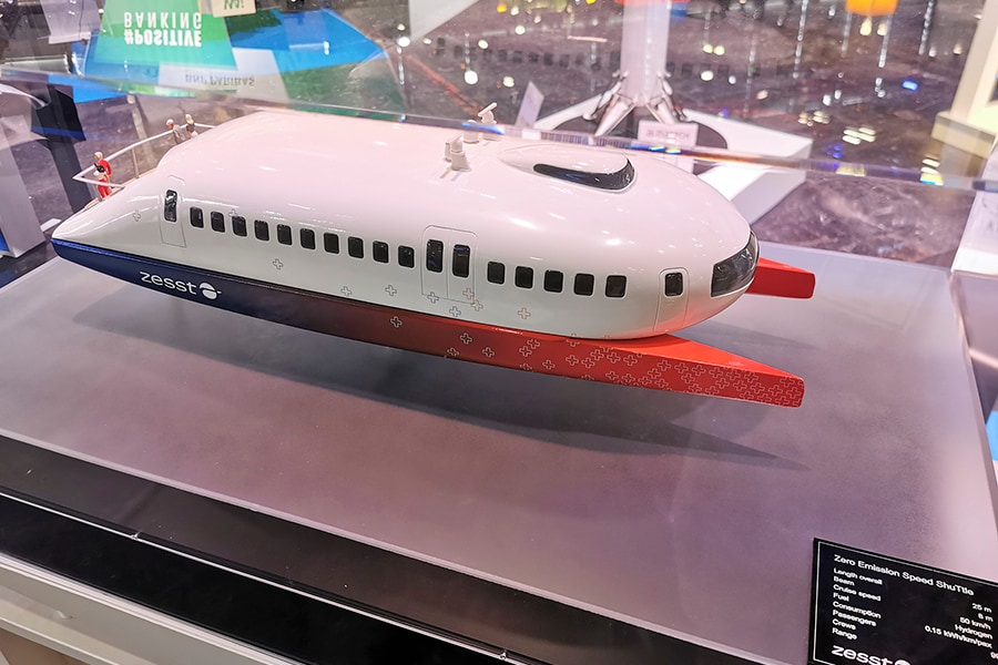 ZESST (for Zero Emission Speed Shuttle) is billed as a certified zero-emission maritime shuttle. Green hydrogen and fuel cells power the shuttle"s various electric motors, with only water released.
