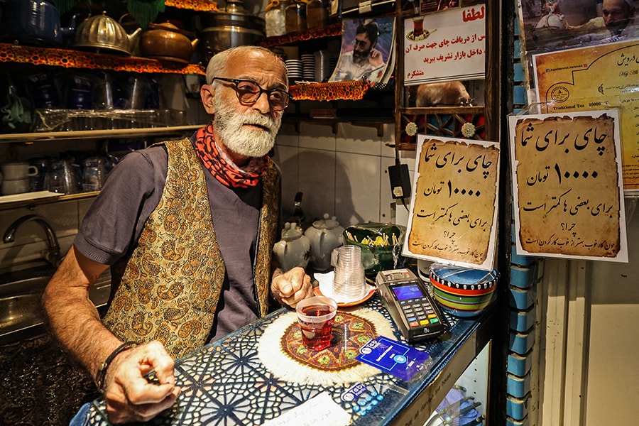 Every weekday, Habibollah Sayadi, 70, leaves his nearby clothing shop to enjoy his Iranian black tea.