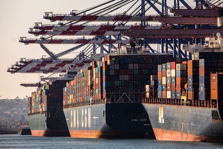 Container ships are seen at the Port of Los Angeles in San Pedro, California. Congestion at US ports has caused supply chain disruptions, driving up prices and leading to a growing shortage of goods