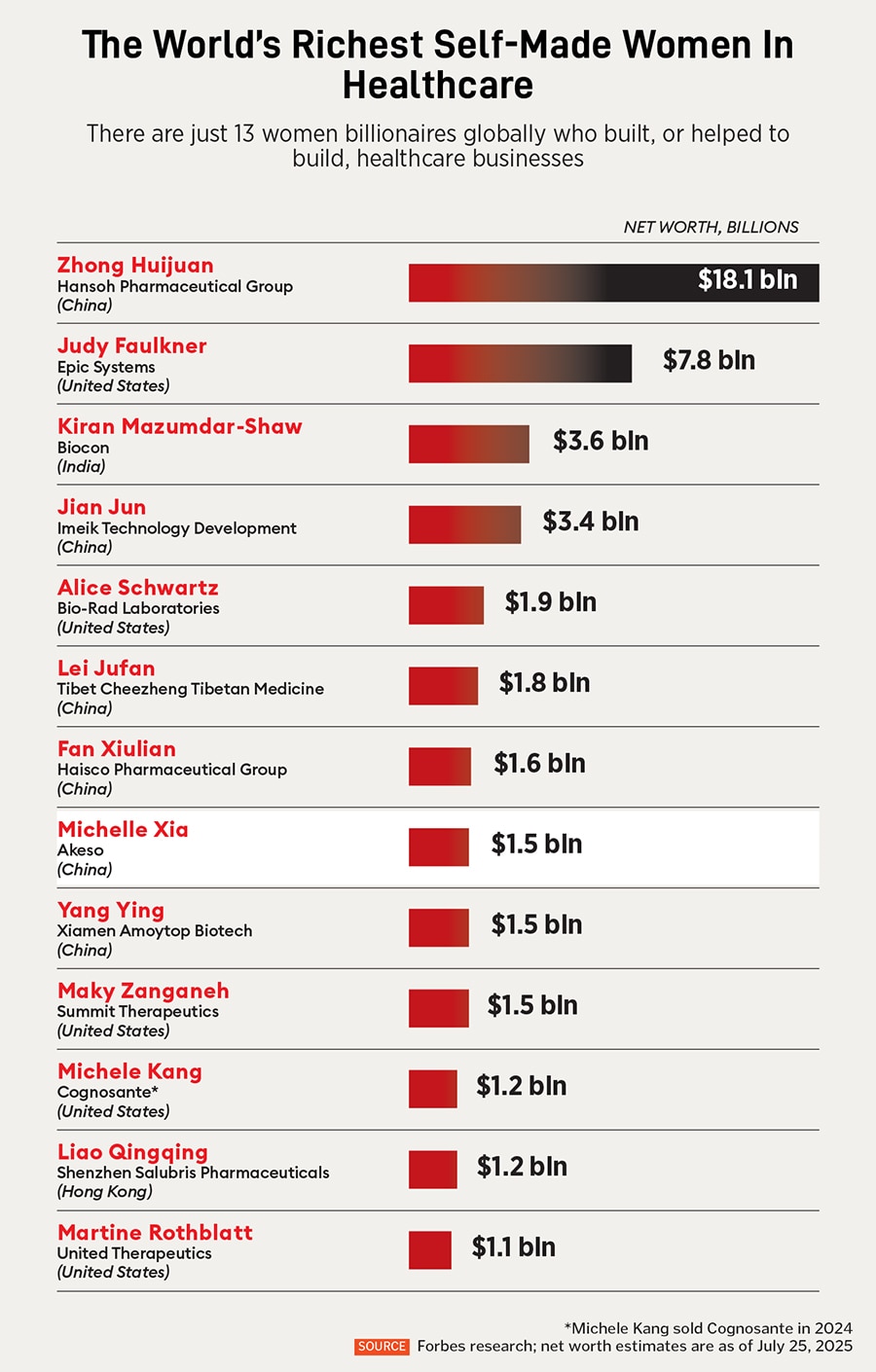 The fact that a drug from a little known Chinese firm beat Merck’s bestseller has led to a run up in Akeso’s shares, which more than tripled in value in the past year. That has turned 58-year-old Xia into a billionaire—with a $1.5 billion fortune, based on her and her family’s 8.5 percent stake in the company, Forbes estimates. She is one of just nine Chinese-born women billionaires in healthcare (including two who inherited their fortunes) and one of 13 self-made women billionaires in healthcare globally.