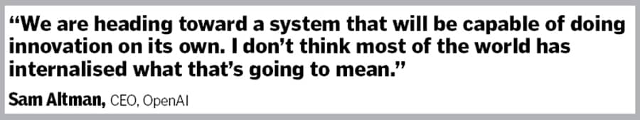 “We are heading toward a system that will be capable of doing innovation on its own,” Altman says. “I don’t think most of the world has internalised what that’s going to mean.”