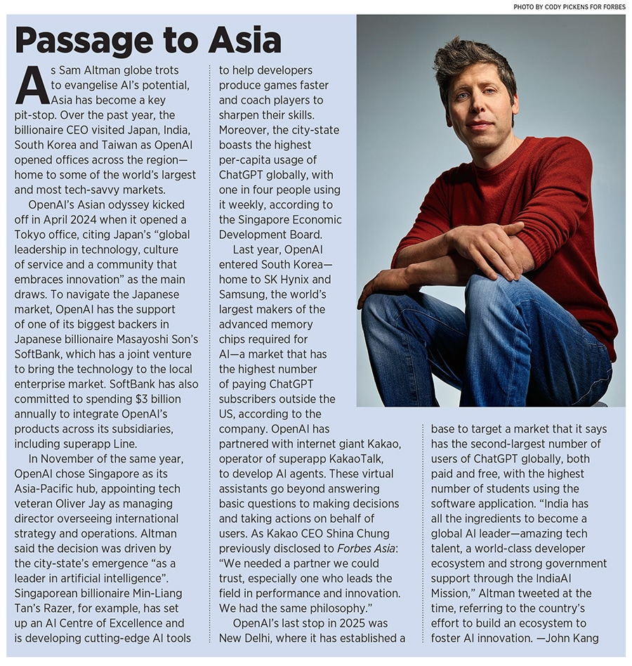 Altman is of that mould. He’s an investor and an accelerator more than an engineer or a scientist. His vision isn’t about perfecting consumer products—it’s about building the underlying systems that the rest of the economy may soon depend on. ChatGPT now has more than 800 million weekly users. OpenAI, with more than $13 billion in revenue last year, was recently valued at $500 billion and is reportedly seeking an additional $100 billion investment, which would raise its value to $830 billion (Altman has no direct equity stake in the company, but his other investments make him worth an estimated $3 billion). Inspired by OpenAI, big tech could pour an estimated $500 billion into AI data centres and chips this year. At this moment, it is perhaps the most important company in the world.