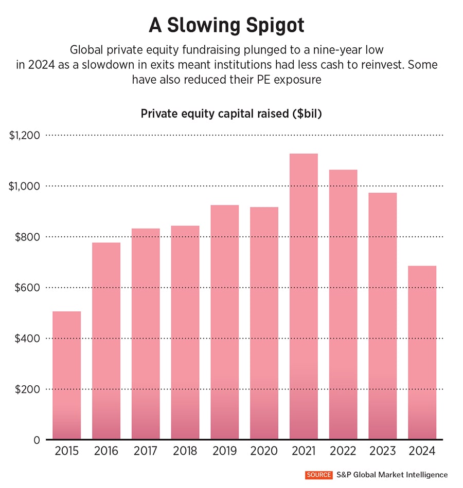 Another concern: As exit deals from private equity funds have slowed, a fast-growing secondary market, including so-called continuation funds, has emerged, with a record $160 billion in transaction volume in 2024. With continuation funds, asset managers in essence are using new investors’ money to pay off old ones. Orlando Bravo, co-founder and managing partner of $184 billion (assets) Thoma Bravo, has cautioned that in this financial game of musical chairs, retail investors who are late to the party might get saddled with continuation funds with underperforming, hard-to-sell assets.