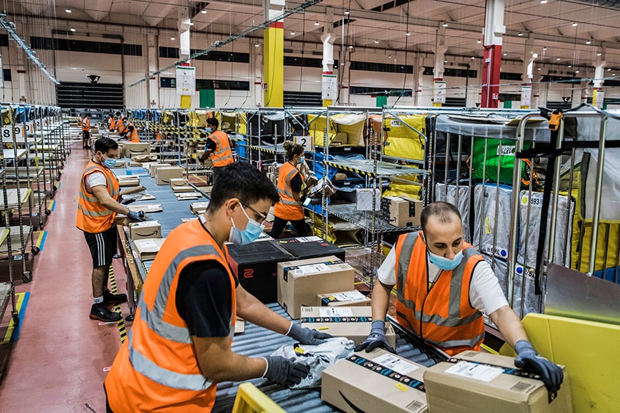Workers process packages at an Amazon facility in Arzano, Italy on Sept. 18, 2020. In the great recession of 2008, big tech companies hit a rough patch just like everyone else. In 2021, they have become unquestioned winners of the pandemic economy.