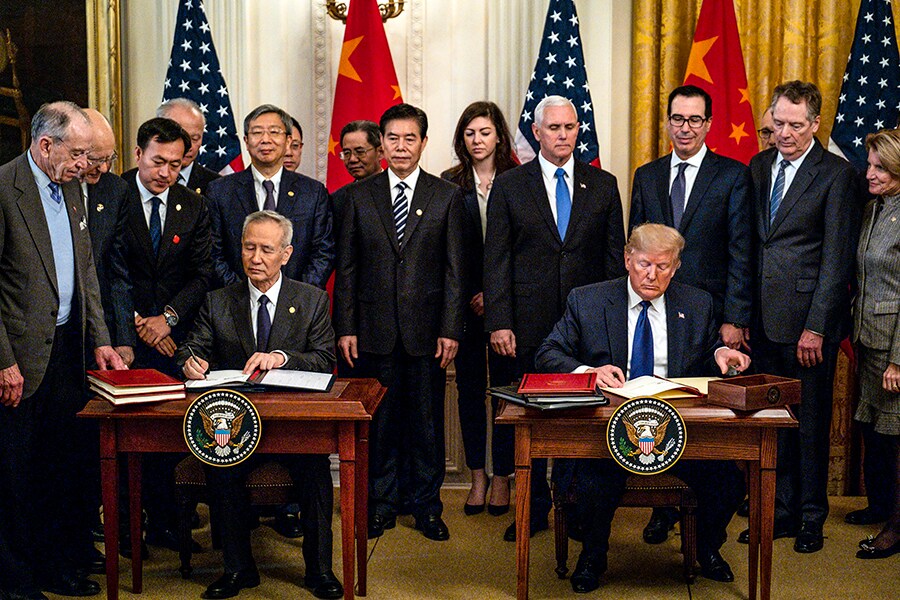 President Donald Trump, right, and Chinese Vice Premier Liu He sign an initial trade agreement in the White House in Washington, Jan. 15, 2020. Last year’s U.S.-China trade deal could set the rules for global commerce for years to come, leaving the door open to lavish Chinese subsidies and unilateral American tariffs. Image: Pete Marovich/The New York Times