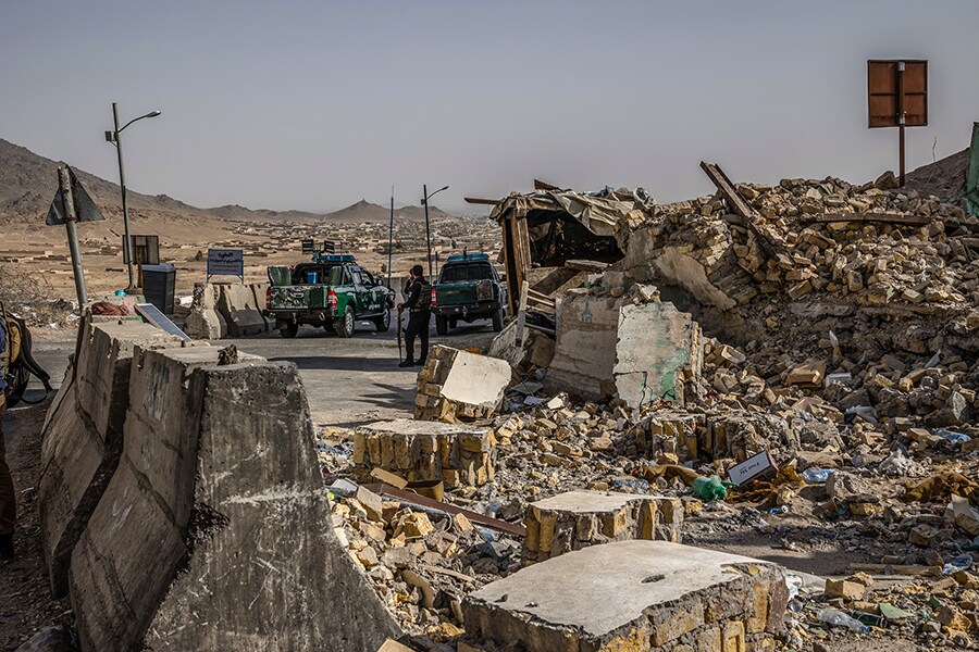 A police outpost in Kandahar, Afghanistan on Aug. 4, 2021, that was destroyed by the Taliban. Two major cities in western and southern Afghanistan were on the verge of collapse to the Taliban on Thursday, Aug. 12, 2021, as the insurgency’s race to seize control of the country accelerated Image: Jim Huylebroek/The New York Times