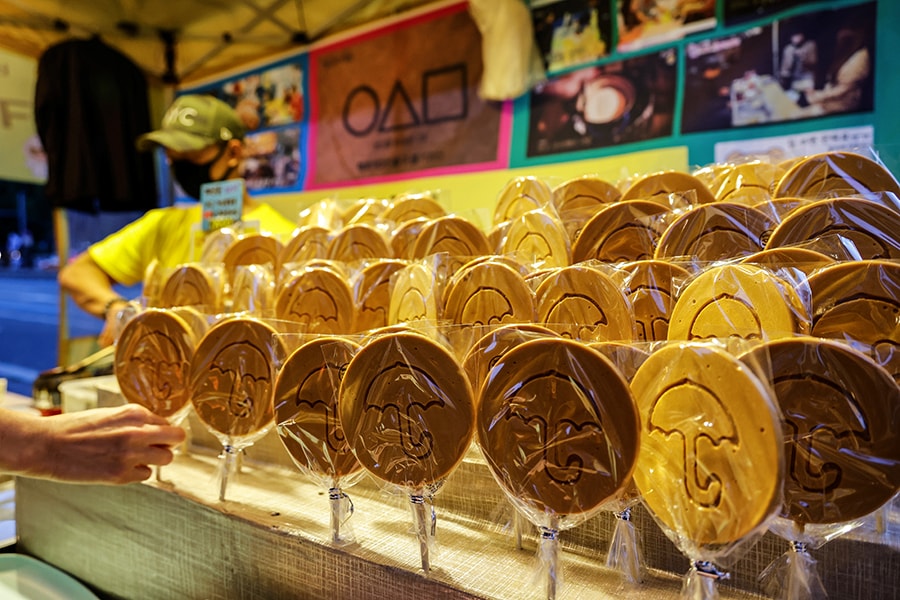A street vendor sells Dalgona candy from the Korean Netflix series "Squid Game" at a Dalgona shop in Seoul, South Korea, October 1, 2021.