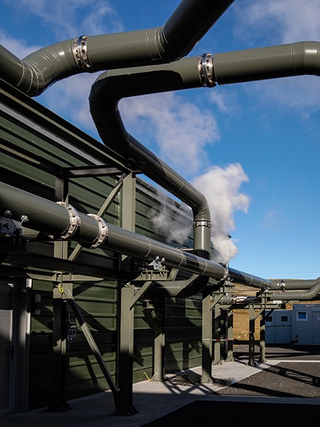 Carbfix has discovered that its CO2 mix will chemically react with basalt and turn to rock in just two or three years instead of the centuries that the mineralization process was believed to take, so it takes the CO2 that Climeworks’ DAC captures and pumps it into the ground through wells protected from the harsh environment by steel igloos that could easily serve as props in a space movie.