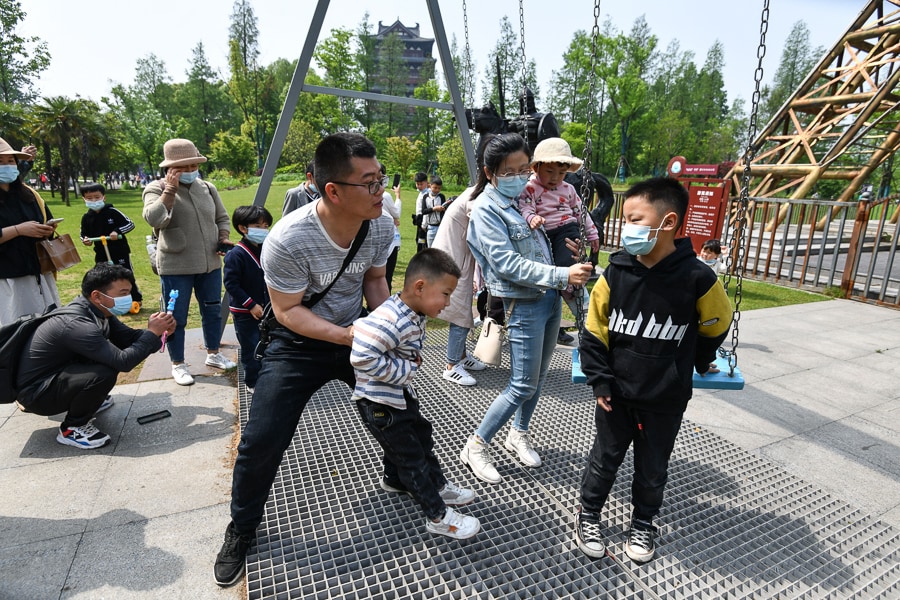 Families at the Fuyang ecological park, China. The "cliff like" decline of China"s birth rate has once again become a social concern.