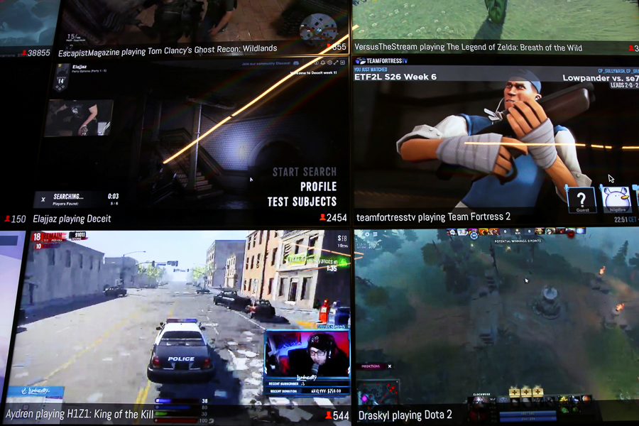 A file photo showing a wall of real-time video game play in the lobby of Twitch Interactive Inc, a social video platform and gaming community owned by Amazon, in San Francisco, California, US. Elijah Nouvelage / Reuters