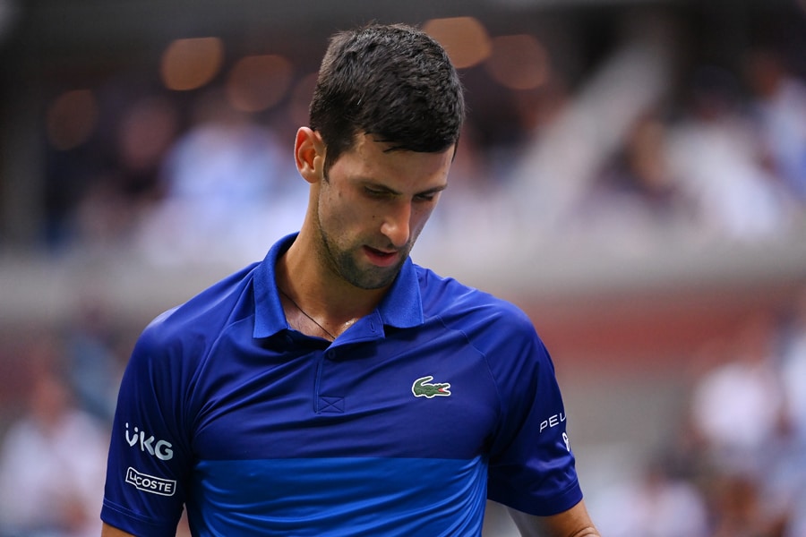 Novak Djokovic during the men"s singles final match at the U.S. Open in Queens on Sept. 12, 2021. He is known for outbursts and the promotion of junk science, but his experience in Australia has left him looking more like a political victim when his entry visa into Australia was canceled and he was being detained, despite his arrival with a medical exemption from the country’s COVID-19 vaccine mandate for international visitors. (Ben Solomon/The New York Times)