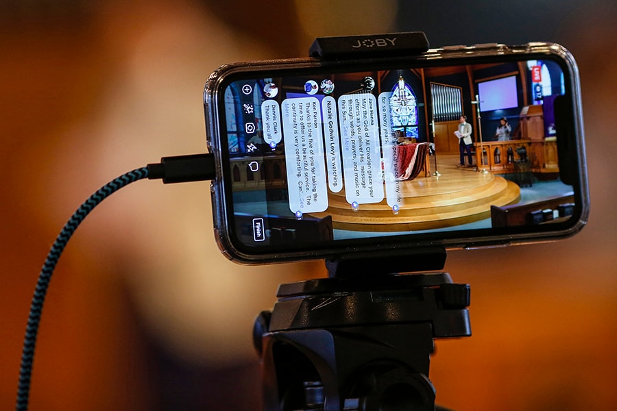An Apple iPhone plugged into a Lightning connector cable is used to stream a church service in Chapel Hill, N.C., March 15, 2020. The European Union is moving toward requiring all mobile devises use USB-C connectors — different from the Lightning connectors used in Apple iPhones Image: Eamon Queeney/The New York Times