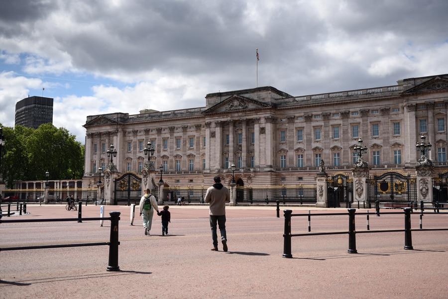 A handful of tourists outside Buckingham Palace in London in the early months of the pandemic, May 13, 2020. The passing of Prince Philip has given new urgency to a transition already underway in the House of Windsor, with Queen Elizabeth II"s reign in its twilight and Prince Charles moving to streamline the royal family. (Mary Turner/The New York Times).