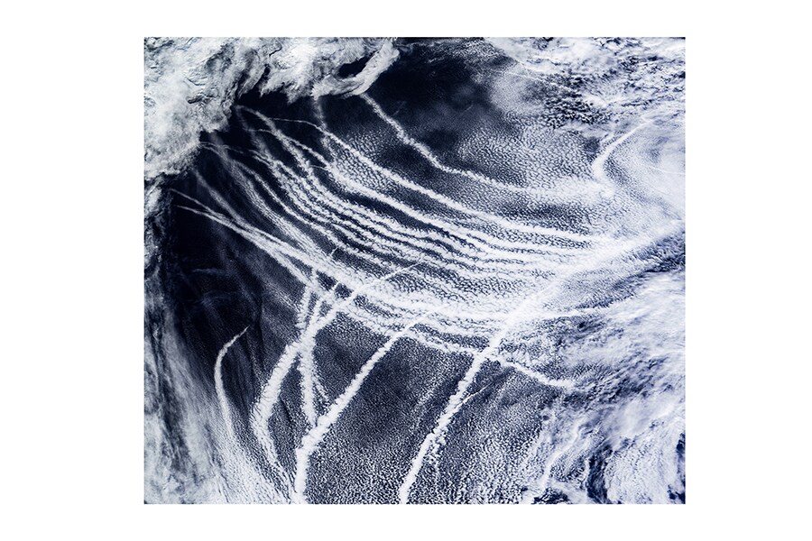 A satellite photo provided by the NASA Earth Observatory shows skies over the northeast Pacific Ocean streaked with clouds that form around particles from ship exhausts on March 4, 2009. Behind closed doors, shipbuilders and miners can speak on behalf of governments while regulating an industry that pollutes as much as all of America’s coal plants.
