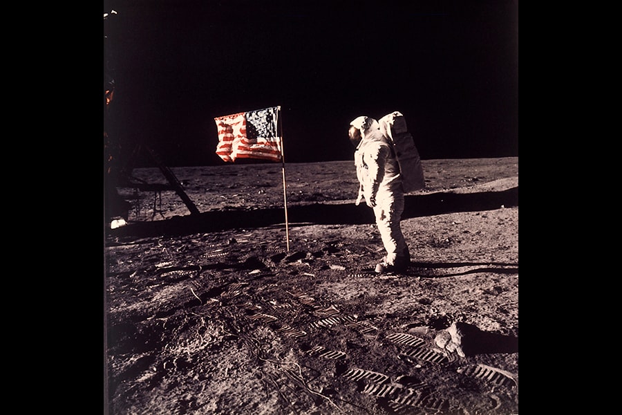 In a photo provided by Neil A. Armstrong/NASA, Apollo 11 astronaut Buzz Aldrin stands on the surface of the moon on July 20, 1969. With the suborbital flights made by Jeff Bezos and Richard Branson this month, the privatization of the space industry has crossed the point of no return. Image: Neil A. Armstrong/NASA via The New York Times