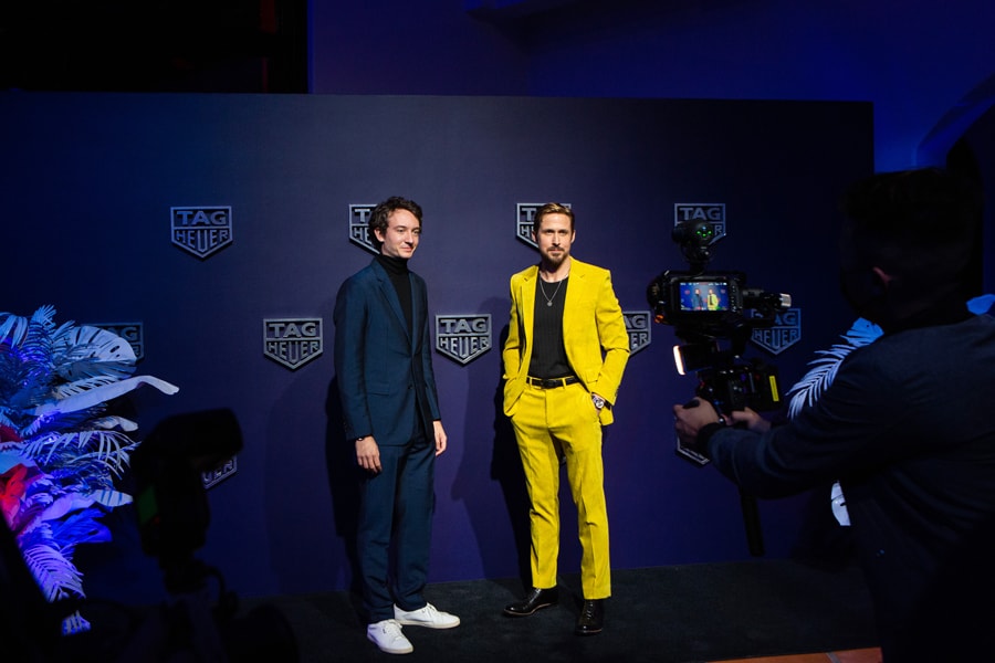 From left, Frédéric Arnault, the chief executive of TAG Heuer, with Ryan Gosling at a TAG Heuer event in Beverly Hills, Calif., Oct. 7, 2021. Arnault is making big moves as chief executive of TAG Heuer. Just don’t mention the show “Succession." (Alex Welsh/The New York Times)