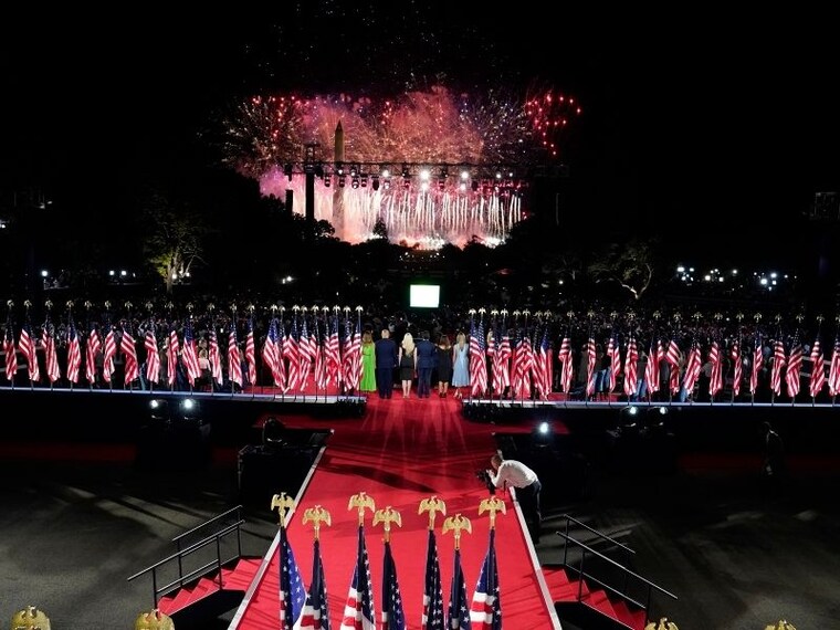 Fireworks spell out President Donald Trump"s name over the Washington Monument at the close of the Republican National Convention on the South Lawn of the White House in Washington, Aug. 27, 2020. For years, we’ve been living inside a story defined by Donald Trump’s reality-TV worldview. America finally changed the channel